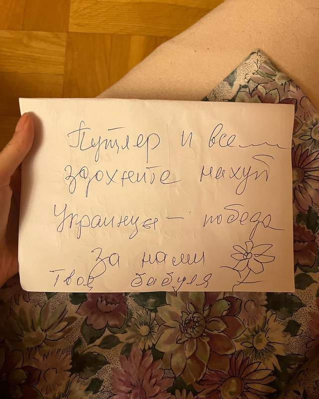 “Путлер і всі …. – здохніть нах*й! Українці, перемога за нами! Твоя бабуля” ,– написала бабуся Анни Трінчер.