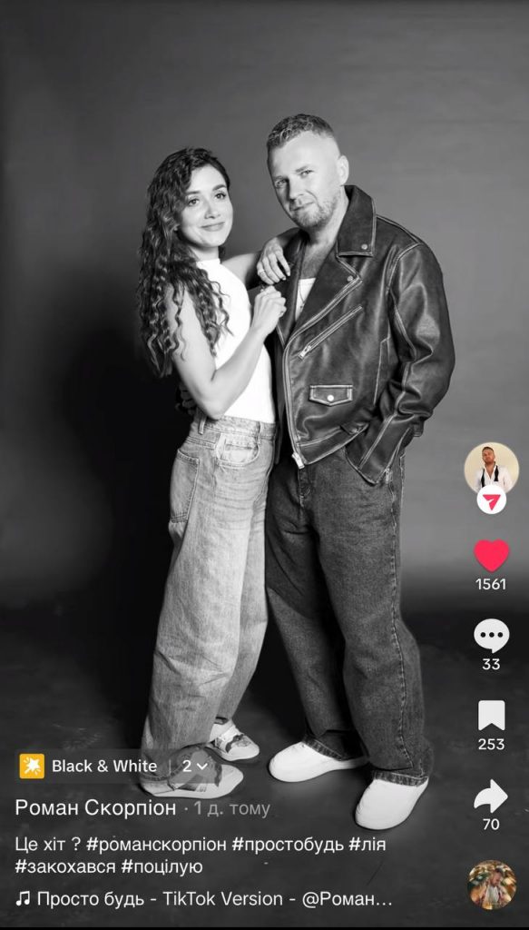 Та на цьому інтрига не закінчилася. Майже одразу після публікації Liya Li, Роман Скорпіон також розмістив у ТікТок загадковий пост у романтичному стилі — з хештегами «Лія», «закохався», «поцілую» . Його прихильники відразу пов’язали це з дописом Liya Li.