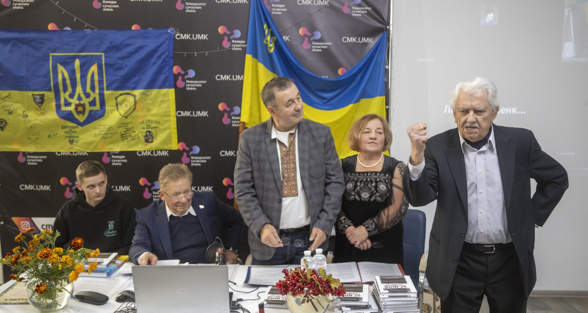 Вів презентацію Василь Іванович Кушерець, голова правління Товариства “Знання” України, доктор філософських наук, професор, Заслужений діяч науки і техніки.