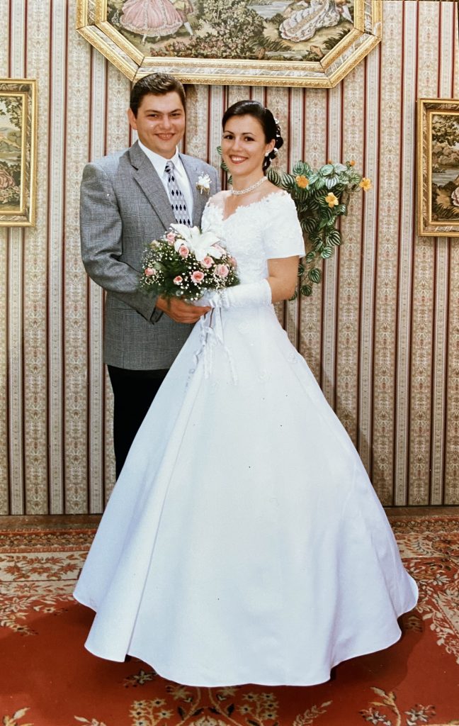 Ми з чоловіком почали зустрічатися у 1997-му. Ми вже разом 27 років і це — неймовірно великий шлях. Цікаво, що ми навчалися в одній школі, але саме там не перетиналися ніколи. Льоша був на рік старший. Така сама історія була, коли ми навчалися в медичному училищі: він обрав фельдшерську спеціальність, а я навчалася на медичну сестру. Але доля все-таки звела нас разом. Ми зустрілися у школі-студії «Перспектива» на Херсонському телебаченні, де збиралися молоді люди, які мріяли стати журналістами. На той час в Херсоні не було журфаку, але ця студія надавала багато знань і освіти.