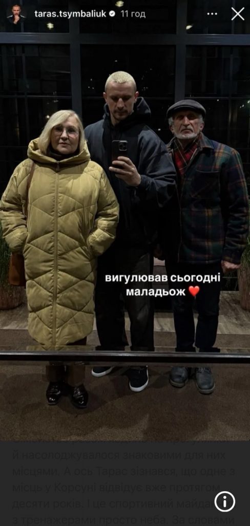 Сімейство разом ходило на прогулянки й насолоджувалося знаковими для них місцями. А ось Тарас зізнався, що одне з місць у Корсуні відвідує вже протягом десяти років. І це спортивний майданчик з тренажерами просто неба. За словами знаменитості, це допомагає йому позбутися стресу.