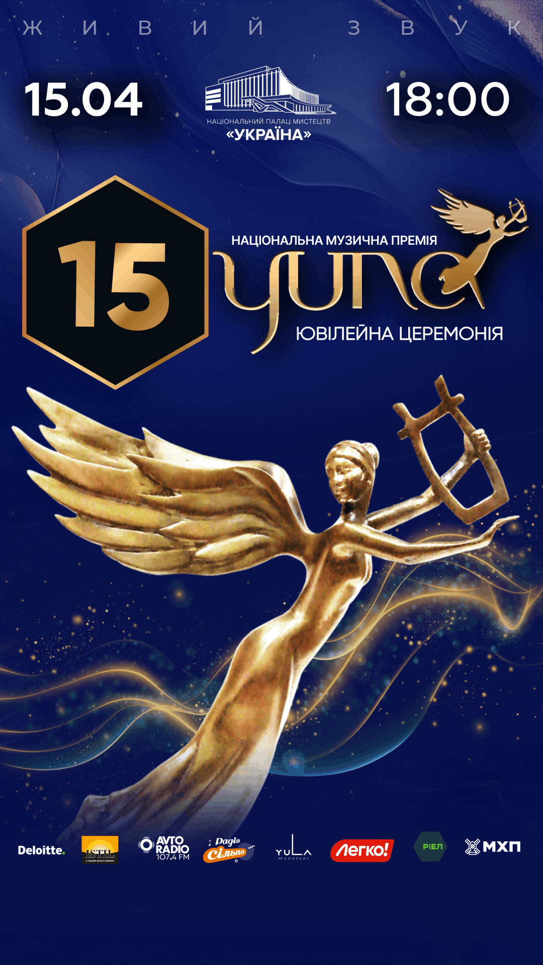 Вже 15 квітня 2026 року в Національному палаці мистецтв “Україна” відбудеться ювілейна церемонія нагородження YUNA. Стали відомі імена артистів, які виступлять на події, та почесних гостей, які вручатимуть нагороди Національної музичної премії YUNA.