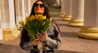 На знімках вся сім’я постала в ніжних образах, які перегукувалися між собою. Так, Євген попозував у світлій сорочці та рожевих штанах, Наталя — витонченій рожевій сукні з вирізами по боках, а їхня донечка — святковому білому боді з квітковим принтом і милими рюшами. Образ дівчинки доповнили милі шкарпетки з бантиками.